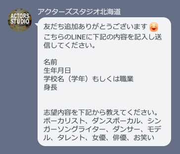 2-アクターズスタジオから「メッセージ」に自動配信が来ますので、返信で下記の項目を送信してください。